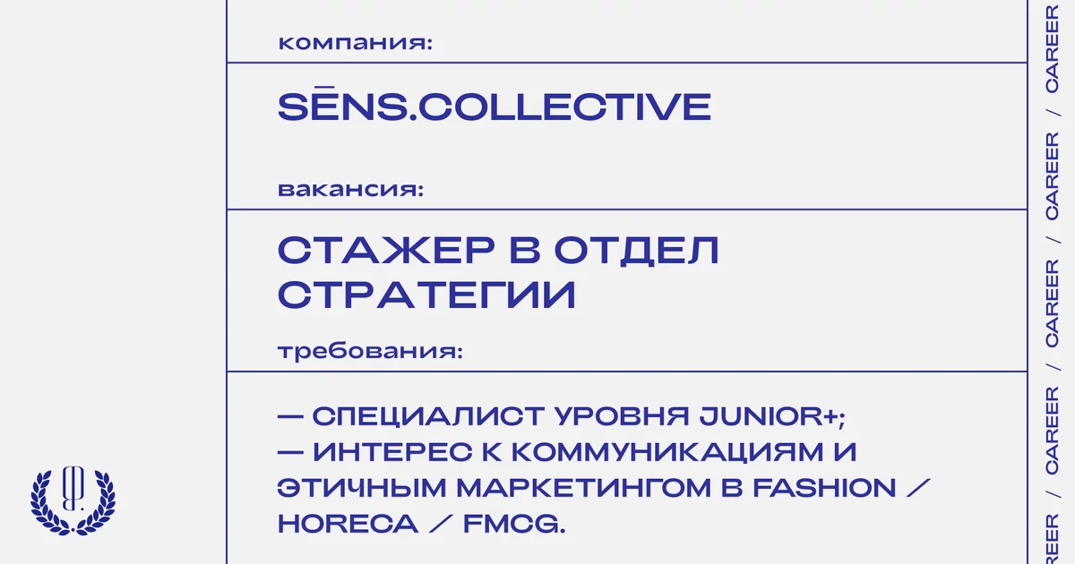 Резюме, портфолио и мотивоционное письмо с темой «Заявка на стажировку "26 от The Blueprint» отправляйте на почту: hr@sens-collective.com. Дедлайн — 23 января.