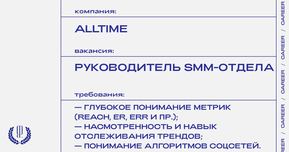 Резюме с темой письма «от The Blueprint» отправляйте на почту: job@alltime.ru
