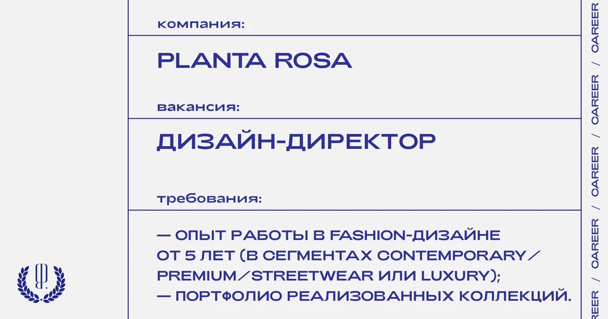 Резюме с темой письма «от The Blueprint» отправляйте на почту: rd@planta-rosa.com