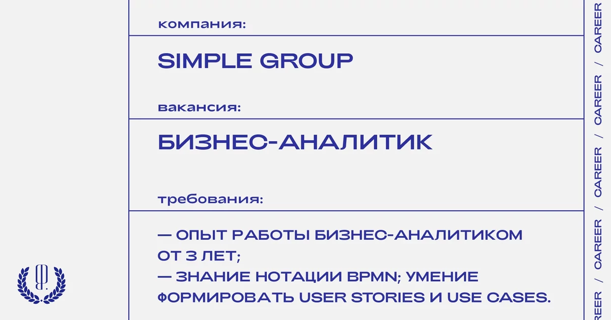 Группа компаний Simple ищет бизнес-аналитика.