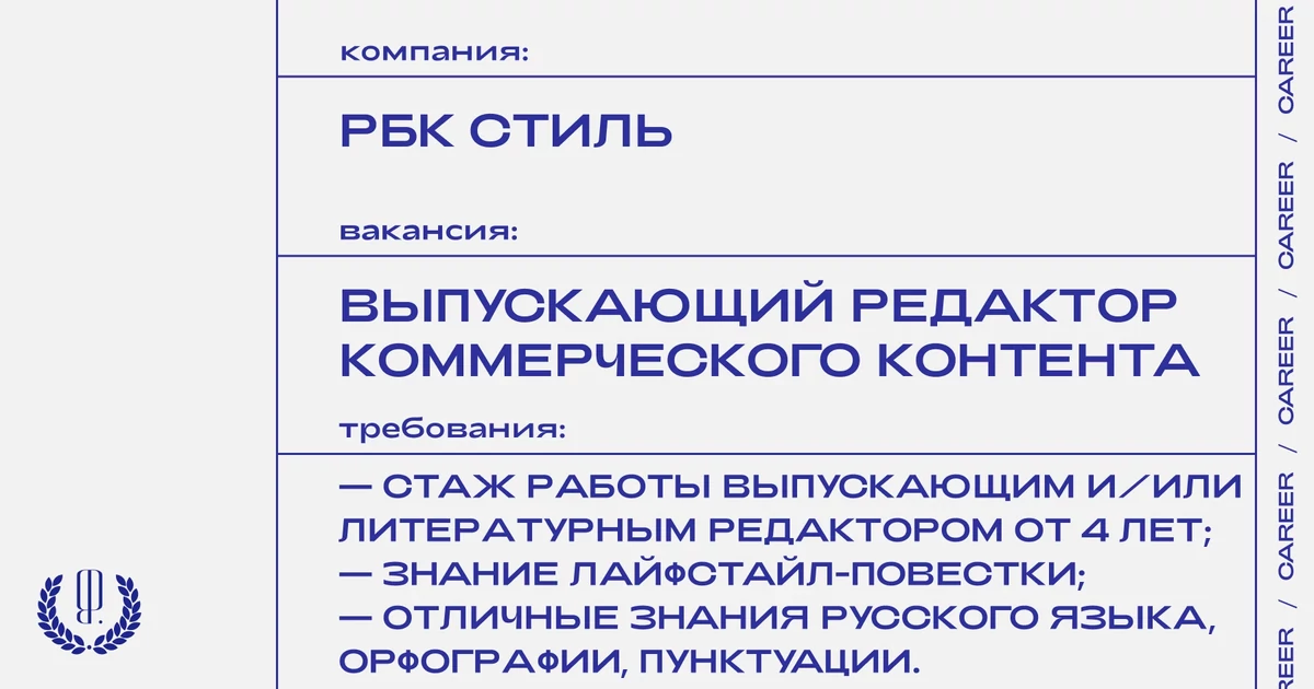 Резюме и портфолио с темой письма «Выпускающий редактор (РБК Стиль) от The Blueprint» отправляйте на почту: asycheva@rbc.ru