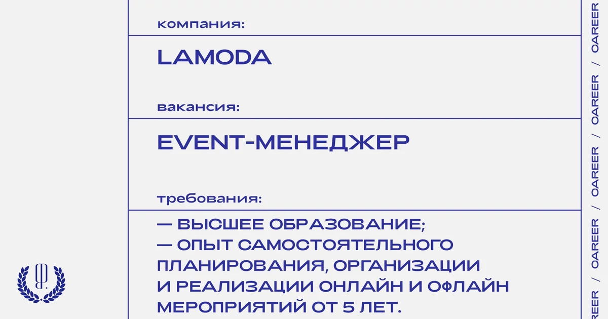 Резюме и сопроводительное письмо с темой «Вакансия ивент-менеджер от The Blueprint» отправляйте на почту: VALERIA@HLEBOZAVOD9.RU. Вместе с откликом расскажите о трех мероприятиях, которые идеально подошли бы для проведения и объясните почему.