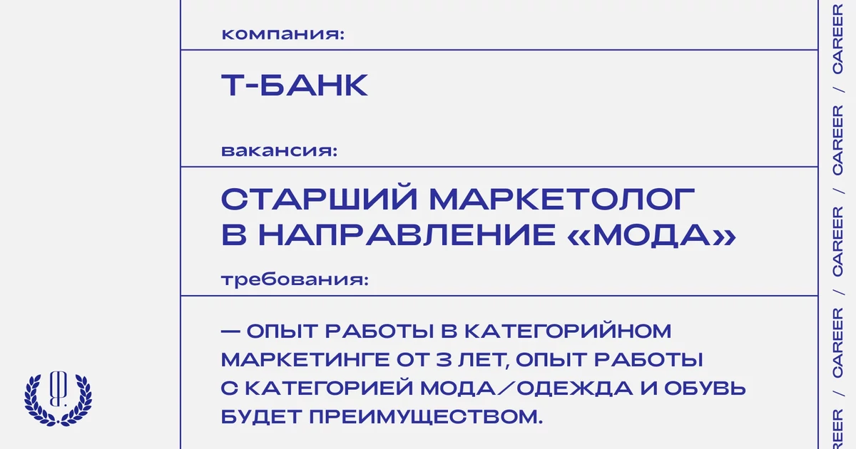 Т-Банк ищет старшего категорийного маркетолога в направление «Мода».