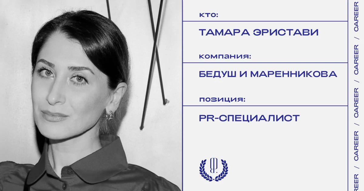 Тамара Эристави покидает позицию PR-специалиста агентства «Бедуш и Маренникова», в котором проработала 6,5 лет. Последние 3 года она занималась PR-сопровождением театра «Шалом», а также — иммерсивного театра «Особняк Дашков 5». Среди клиентов в разные годы работы в агентстве были: кинопрокатная компания Capella Film, издательский дом «Книжники», арт-кластер «Кристалл 1901» девелопер Asterus и другие проекты в сфере культуры и искусства.