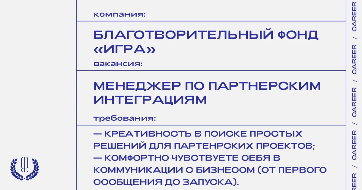 Резюме и портфолио с коротким рассказом о себе с темой «от The Blueprint» отправляйте на почту: sasha@fond-igra.ru