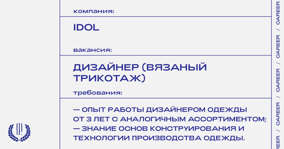 Бренд Idol ищет дизайнера (вязаный трикотаж).