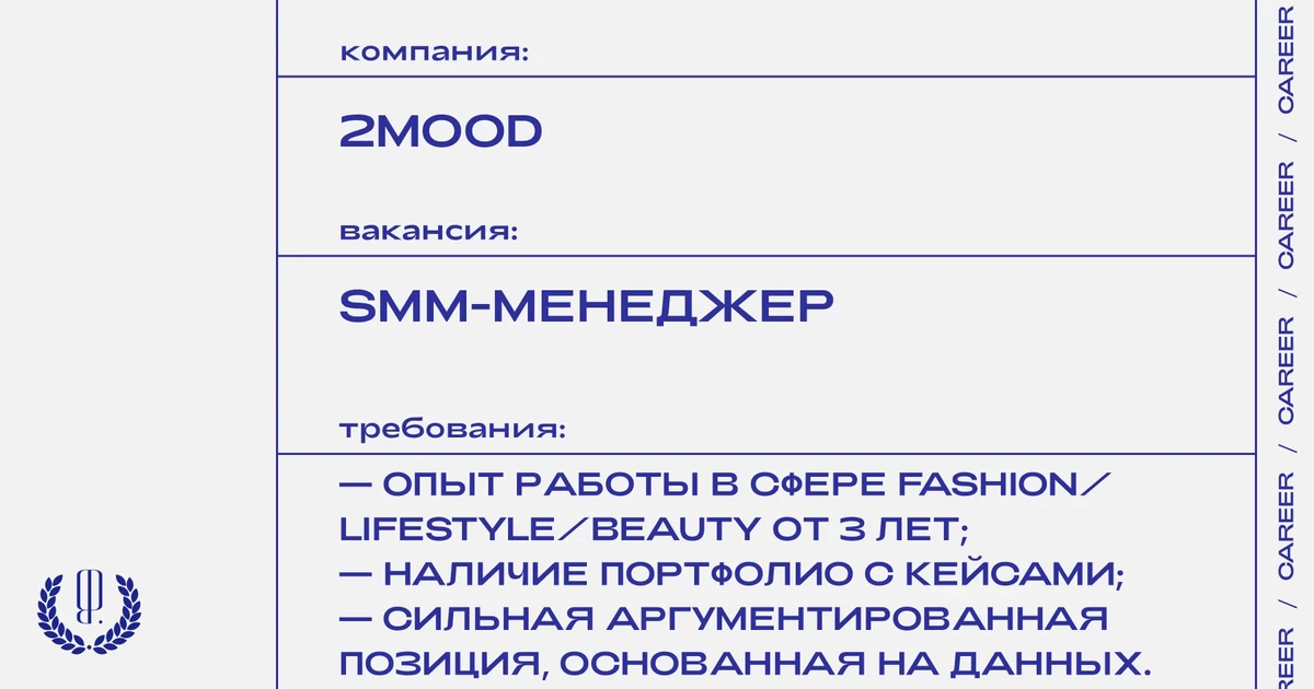 Резюме с темой письма «от The Blueprint» отправляйте на почту: p.moskalev@2mood.com
