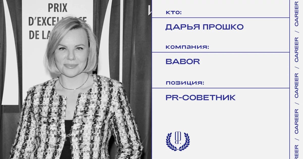 Дарья Прошко назначена PR-советником бренда профессиональной косметики Babor. Она также продолжит заниматься продвижением на российском рынке брендов Keune, Alopel и «Бронницкий ювелир». До этого Дарья отвечала за PR-стратегию брендов Elemis, Ligne St Barth, Foreo и [comfort zone].