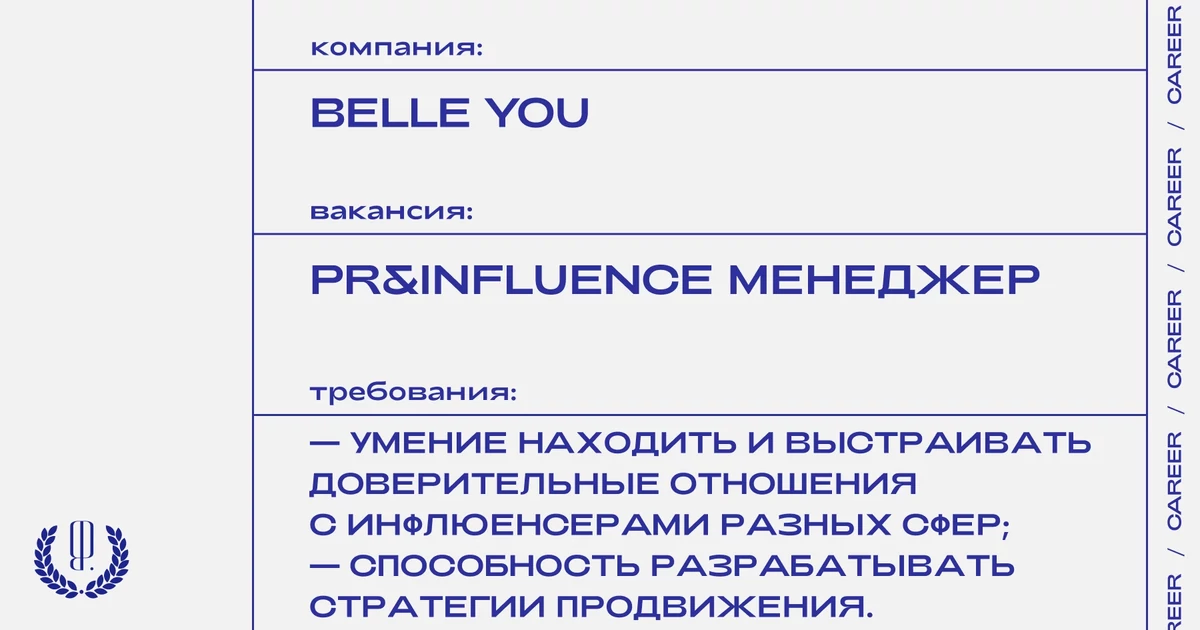 Резюме и портфолио с темой письма «от The Blueprint» отправляйте на почту: k.lysenko@belleyou.com