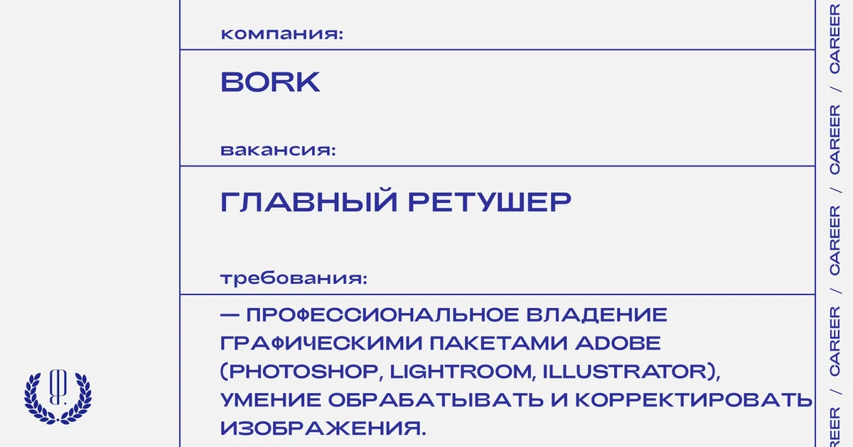 Резюме с темой письма «от The Blueprint» отправляйте на почту: Valeriya.Chernova@bork.com