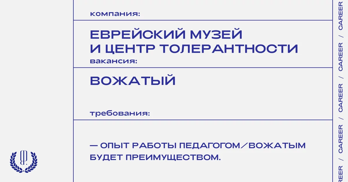 Откликнуться можно здесь (укажите, что вы «от The Blueprint»). Почта для вопросов: rc@jewish-museum.ru. Дедлайн — 16 февраля.