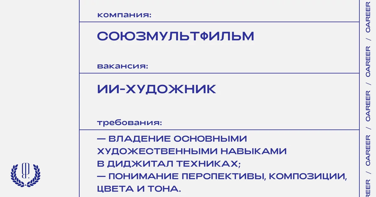Резюме и портфолио с темой письма «ИИ-художник от The Blueprint» отправляйте на почту: HR@souzmult.ru