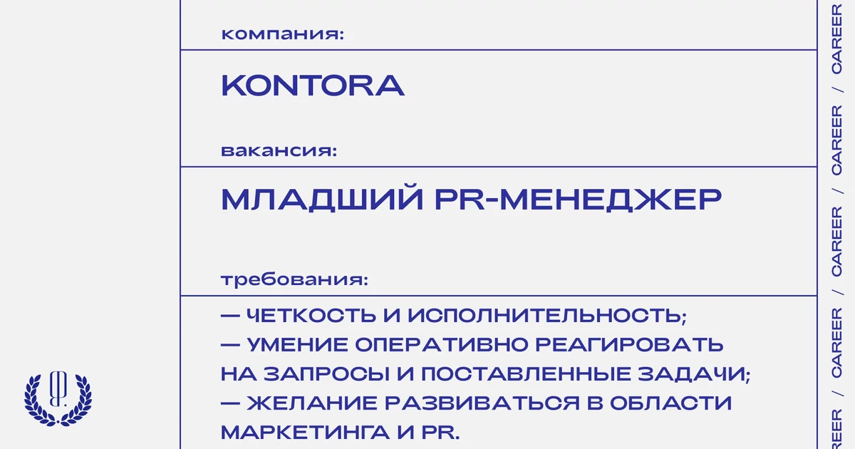 Резюме с темой письма «от The Blueprint» отправляйте на почту: info@kontora-agency.com