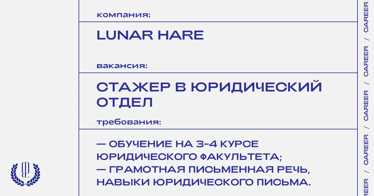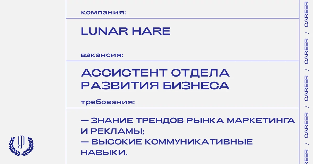 Резюме, а также сопроводительное письмо с темой «ассистент от The Blueprint» отправляйте на почту: job@lunarhare.ru