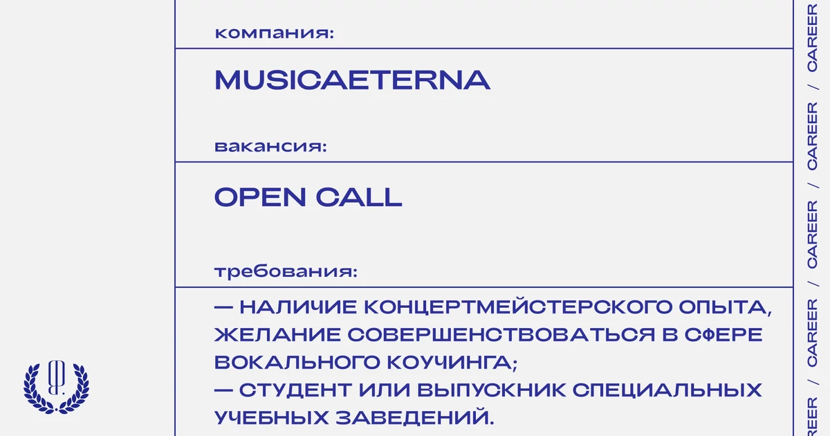 Резюме с пометкой «от The Blueprint» отправляйте в телеграм (@Anna_Gold_rec) или на почту: anna.agafonova@musicaeterna.org