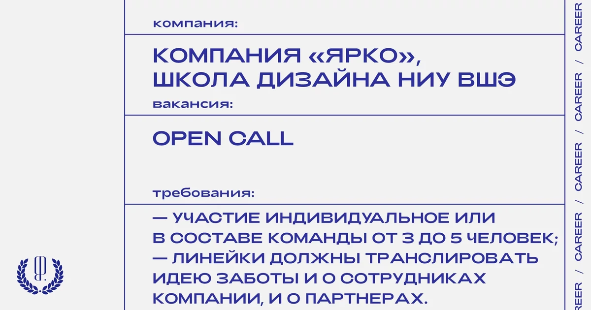 Откликнуться можно здесь (укажите, что вы «от The Blueprint»). Почта для связи: design.news@hse.ru. Дедлайн — 28 февраля.