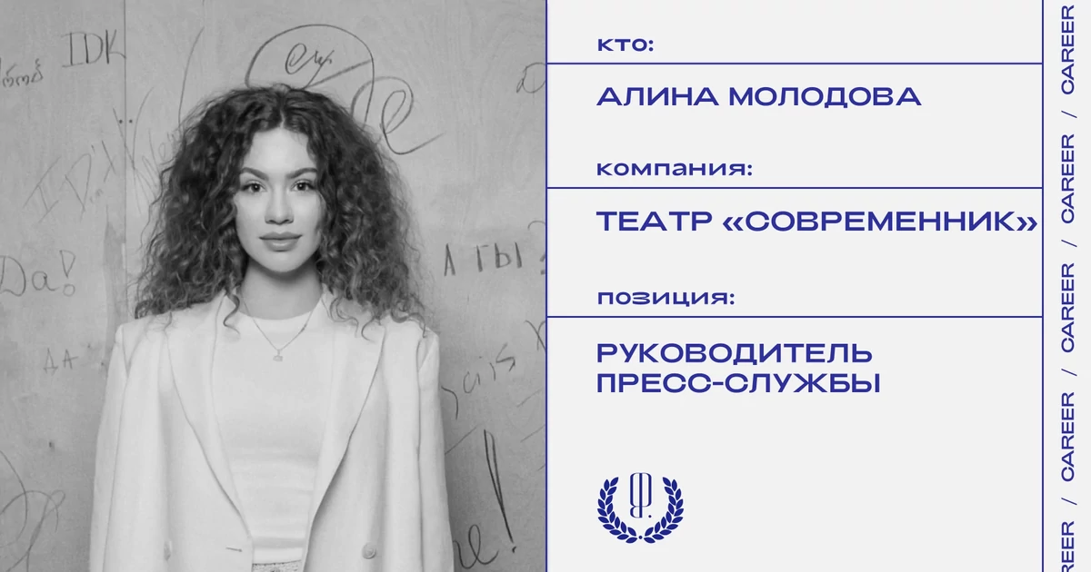 Алина Молодова назначена руководителем пресс-службы театра «Современник». Ранее она занималась внешними коммуникациями в Департаменте культуры Москвы, также она развивала арт-индустрию в Агентстве креативных индустрий и курировала выставочные проекты в Центре современного искусства М’АРС.