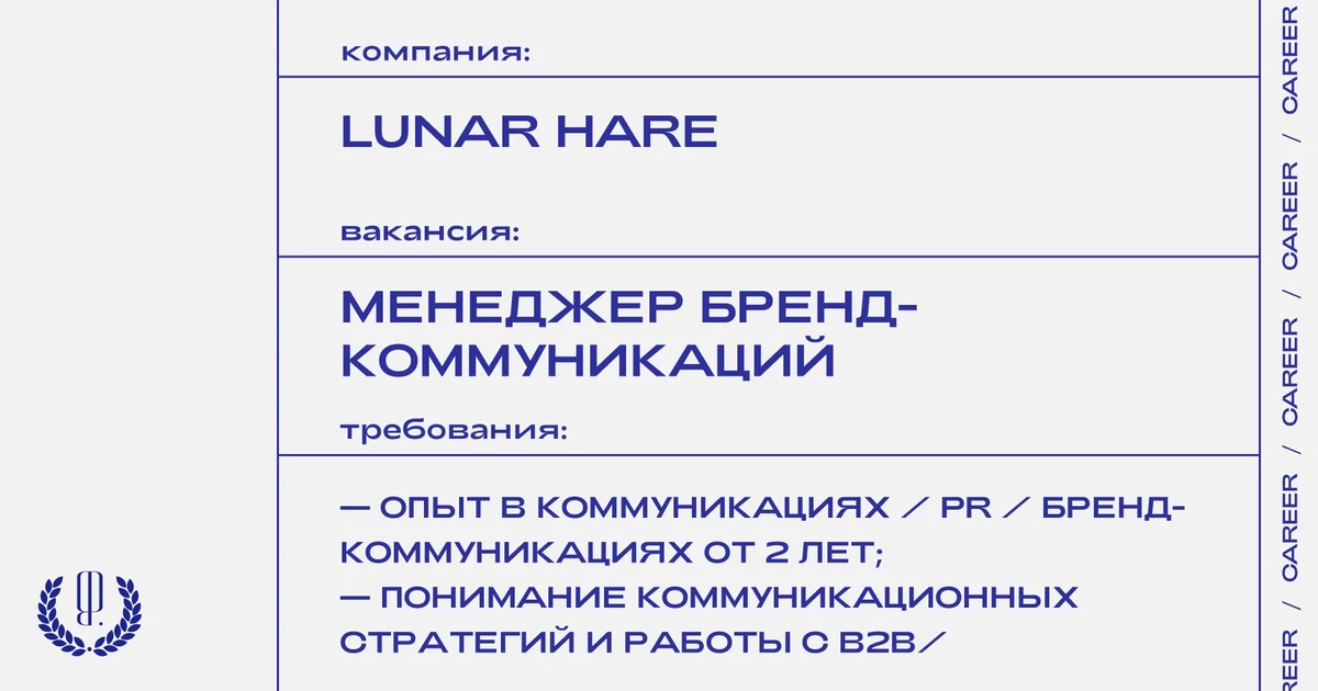 Резюме, портфолио и мотивационное письмо с темой «от The Blueprint» отправляйте на почту: job@lunarhare.ru