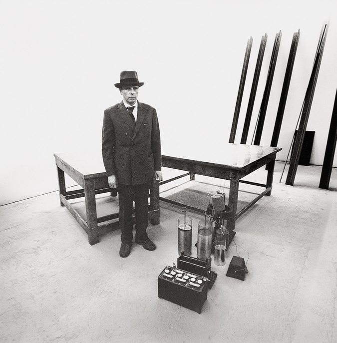 Вероятнее всего, это миф, придуманный самим художником, но послевоенная травма, а также необычные материалы, включая войлок и животный жир, навсегда остались в его творчестве. С 1947 по 1951 год он учился в дюссельдорфской Академии художеств и постепенно выработал свой «странный стиль»: акварельные рисунки, похожие на наскальную живопись, словно бы отвечали на знаменитую реплику Теодора Адорно о немыслимости стихов после Освенцима — искусство все-таки возможно, но только если начать заново. Перформансы вроде «Как объяснить картины мертвому зайцу» (1965), в котором художник, покрыв свою голову медом и золотой фольгой, несколько часов нашептывал мертвому зайцу мысли об искусстве, тоже подразумевали, что классическое искусство после войны обнулилось.