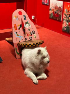 Вечный спор собачников и кошатников в этот раз решился однозначно в пользу первых. Сразу несколько галерей показывали живопись и графику с изображениями более человекоориентированных четвероногих домашних любимцев, а стенд галереи Sample и вовсе украшала живая модель. Кошек замечено не было.