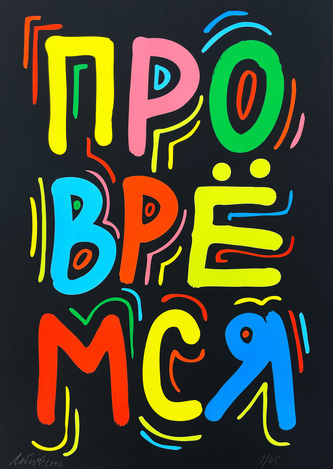 «В 2014 году я основал издательство тиражного искусства “Формат Один”. С тех пор совместно с мастерской “Принтмафия” мы выпустили более сотни работ современных российских художников, прежде всего тех, кто принадлежит к уличной волне. Шелкографию “Провремся” Кирилла Кто мы издали в 2025 году и впервые представили публике на тринадцатом выпуске ярмарки Cosmoscow, где она вызвала взрыв интереса. Кирилл работает в основном с текстом и слоганами, которые размещены в городе на заметных местах. Они выступают своего рода внутренним голосом города. За кажущейся инфантильностью нередко скрываются серьезные послания. В мягкой манере Кирилл Кто рассуждает на очень колкие, болезненные темы, сохраняя при этом оптимизм и способность идти дальше.