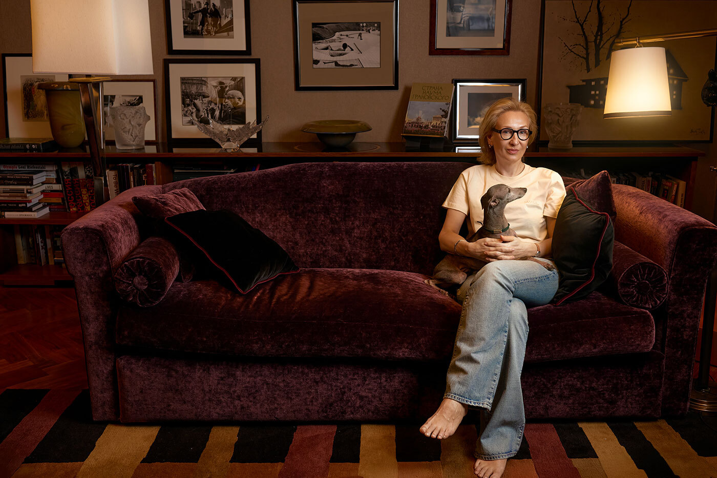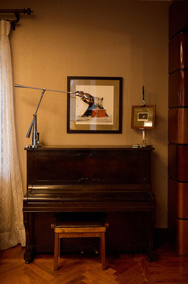 В гостиной есть фотографии, но не те, которые я продаю. Это подарки в основном — либо авторов, либо близких людей, и так исторически сложилось, что именно эти снимки на эту стену пришли. И они, спасибо защитным стеклам, висят и совершенно не меняются.