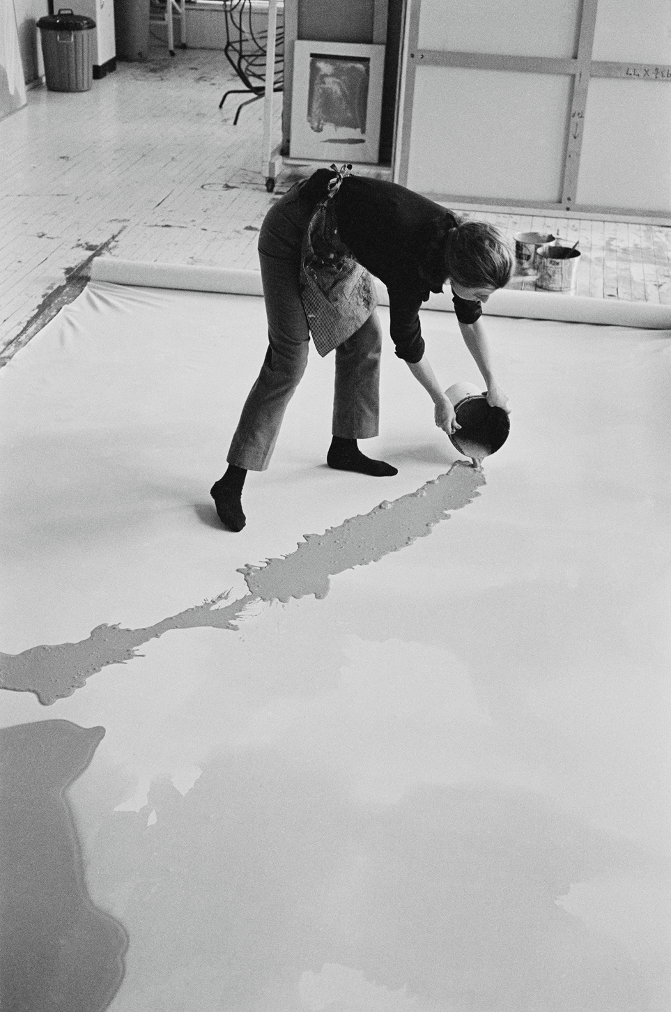 Хелен родилась в 1928 году на Парк-авеню, то есть в шаге от Метрополитен-музея, третьей девочкой в семье судьи Верховного суда штата Нью-Йорк. Никаких побегов из провинции, никаких трагедий, никакого «вопреки». Искусство для нее с детства было частью образования, одним из способов общения и размышления, таким же естественным, как книги или разговоры за столом. И это важно: Франкенталер никогда не использовала живопись как жест освобождения или социальной позиции. Ее холсты не кричат, не «объясняют», не требуют сочувствия. Они существуют в другом регистре — там, где цвет и материал сами порождают смысл.