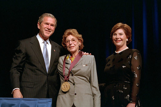 Президент Джордж Буш-младший вручает Хелен Франкенталер Национальную медаль искусств, 2002