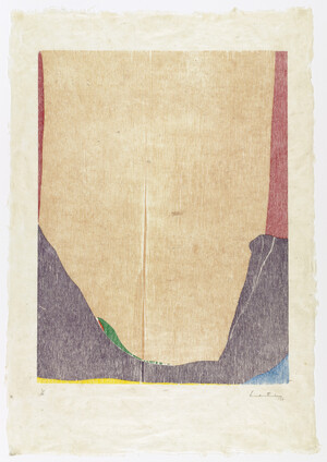 В 1970-е Франкенталер разводится и пробует себя в графике, главным образом в ксилографии — и делает с ней то же, что в начале 1950-х сделала с живописью, то есть пытается работать тонкими слоями. Лучшие печатники уверяли художницу, что добиться прозрачности и мягкости в дереве невозможно. Но она приносила десятки пробных отпечатков, корректировала, экспериментировала, собирала заново. Ее работа с основоположником американской гравюры Кеннетом Тайлером и его нью-йоркской мастерской Tayler Graphics дала миру ксилографии, по сложности и тонкости исполнения сравнимые разве что с японской традицией. Почти ландшафтная, напоминающая каньон структура East and Beyond (1973) бросает вызов представлениям о том, чем может быть абстракция.