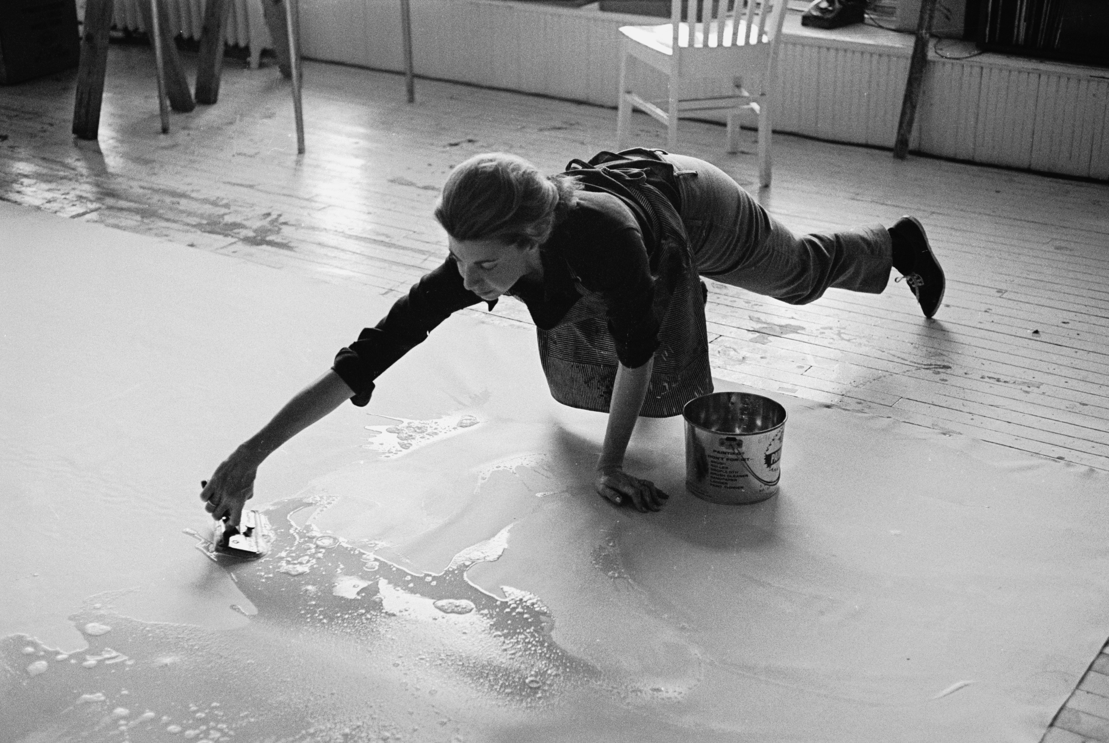 Говоря о стремительной карьере Франкенталер, невозможно не упомянуть Климента Гринберга — главного критика американского модернизма. Он стал ее партнером, куратором ее репутации и проводником в преимущественно мужской художественный мир. Наконец-то Хелен смогла войти в главные мастерские Нью-Йорка и спорить об искусстве с небожителями. Одним из них был Поллок. Посещение его студии, куда Хелен попала в том же 1951 году, изменило все. Позже Хелен расскажет своему биографу Барбаре Роуз: «Это было так, будто я внезапно оказалась в чужой стране, не зная языка, но достаточно начитавшись о ней, испытывая страстный интерес и стремясь жить там. Я хотела жить в этой стране; я должна была жить там и овладеть языком».