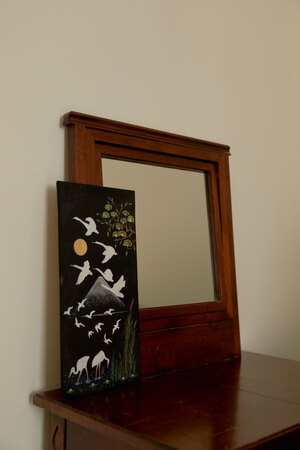 В моем доме много работ моих друзей. Моя школьная подруга Женя Бобкова, ставшая большим ученым-урбанистом, на самом деле всегда мечтала быть художником. В свободное от университетской работы время она делает удивительно тонкую и нежную графику.