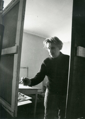 Владимир Немухин в мастерской на 4-ой Тверской-Ямской ул., 1978. Фото: И.А. Пальмин