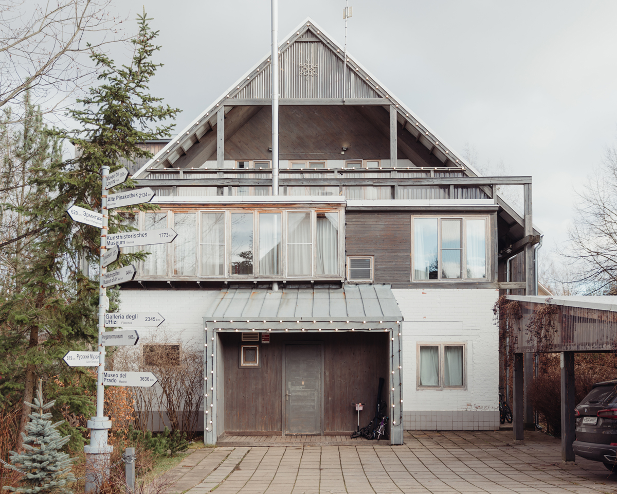 Владимир: С расстояниями до мировых музеев, теперь до них как до луны. Вообще история дома забавная. В 2019 году у нас родилась дочка, вскоре пришла пандемия и всех посадили на карантин, Аня (Анна Гвасалия — жена и партнер) — девушка, которая на месте долго не сидит — говорит: «Надоело, хочу за город». Я позвонил агенту: «Может, у вас что-то можно снять?» — «Нет, все занято. А вообще есть один странный объект, может, он тебя заинтересует». Приезжаем, а это дом, который построил архитектор и художник Саша Бродский. Как он любит — такое все странноватое и выглядит бедненько (на втором этаже из фасада выпирает узкий длинный кабинет, обшитый досками и похожий на скворечник. — Прим.