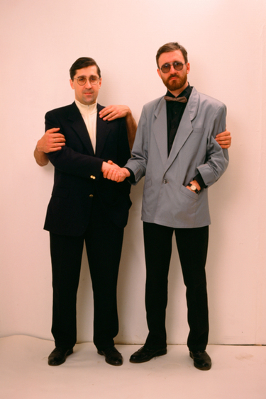 Владимир: Я думаю, что все достаточно просто было. Олег [Кулик] предлагал какие-то проекты, что-то мы зарубали, что-то нам нравилось. Ну и, слушай, тогда какой был год, 1990-91-92-й. Жили бурно, и мы бурили изо всех сил. Ты же живешь в социуме, и интересно его чуть-чуть проверять на вшивость. Ну мы и проверяли. У нас была галерея очень далеко, на Преображенской площади, стекляшка, где до этого пылесосами торговали. Надо было минут пятнадцать от метро пройти, и ничего, народ валил. Перед перформансом Кулика «Пятачок раздает подарки» коммунисты выступали в газетах, люди стояли с плакатами: «Мы не позволим!». Айдан мне звонит: «Я тебя призываю, пожалуйста, не делай этого». — «Айдан, мы пойдем до конца» (смеется).