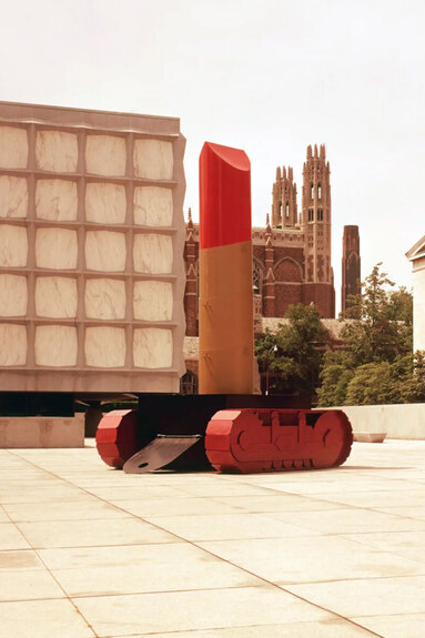 Одно из первых паблик-арт произведений Олденбурга — виниловая губная помада на фанерных танковых гусеницах. На фоне протестов против войны во Вьетнаме Клас создал в кампусе Йельского университета антиавторитарный пацифистский символ — и шутку, и серьезный критический жест с очевидным фрейдистским подтекстом (в том же 1969 году женщин впервые допустили до учебы в Йеле). «Губная помада...» — это еще и трибуна, высоту надувного объекта можно было варьировать, пока скульптуру не переделали из стали и стекловолокна. Деньги на проект собирали студенты университета, Олденбург отказался от гонорара. Реакция была неоднозначной, скульптура долго курсировала между кампусами, пока не вернулась домой, во двор Колледжа Морзе.