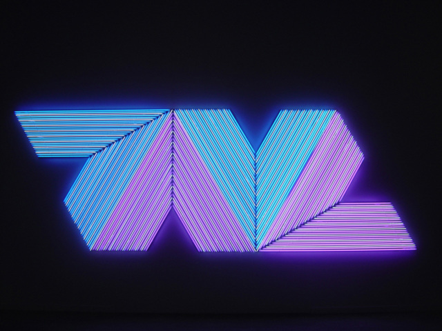 Эта работа со светом, и не просто со светом, а с мощными неоновыми лампами, озаряющими все пространство зала. Очень чистый розово-голубой свет обладает почти гипнотическим эффектом, напоминая о магнетизме улицы, о магии вывесок ночного города. Но за основу своего произведения Бертран Лавье берет работу знаменитого минималиста Фрэнка Стеллы, работу 1960-х годов, самого минималистичного периода, который был у этого художника. И «полосатость» этих аскетичных работ Стеллы, в которых он обсуждает проблемы формы и языка, натолкнула Бертрана Лавье на мысль об использовании неоновых трубок. Он переводит почти монохромную работу Стеллы в яркую, красочную вывеску. И обсуждение важных художественных проблем становится фактом массовой городской культуры, урбанистической культуры, которая дает этому произведению новые средства и новые возможности.