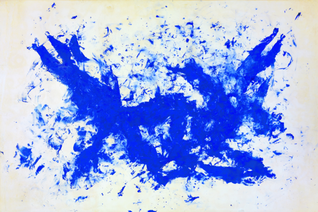 Идея классической красоты соединяется у Кляйна с его идей чистого духа, нематериального. Вообще «нематериальное», кляйновский полет — это очень красивая идея. Эффектен и метод реализации этой идеи, когда Ив Кляйн в «Живых кистях» превращает процесс создания произведения в некий перформанс. Он делает красивым и самого художника, который больше не пачкает руки краской, а ходит в костюме и белых перчатках. Этакий художник-демиург, который усилием своего духа, усилием мысли заставляет красоту проявиться на холсте.