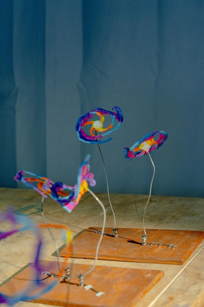 Если честно, мне фигура Циолковского не очень симпатична, но если мы посмотрим на эту цитату, в ней есть важное для меня. Мне не так много доводилось общаться с младенцами, но колыбели я видел. И вот перед младенческими колясками, кроватками вешают модули с фигурками, в том числе, наверное, зайчиков, чтобы у малыша развивалось зрение, то есть чтобы он мог в том числе лучше различать разные планы. То, что я делаю, — это как раз игрушки, развешанные перед колыбелью, которые помогают зрителю сфокусироваться на том, что за ее пределами происходит.