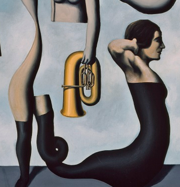 Кураторы Франциска Вандепит (Королевские музеи изящных искусств Бельгии), Дидье Оттингер и Мари Сарре (Центр Помпиду) как будто специально заботятся о любителях искусств, увеличивая до размеров стены страницу из журнала La Révolution surréaliste с монтажом Рене Магритта «Я не вижу [женщину], спрятанную в лесу» (Je ne vois pas la femme cachée dans la forêt): паспортные фотопортреты 16 участников движения сюрреалистов и обнаженная женщина в центре композиции, которую они действительно в упор не видят по причине своих закрытых глаз. Перечень имен подсказывает нам, что славы добилась ровно половина героев работы Магритта: он сам, а также Луи Арагон, Андре Бретон, Луис Бунюэль, Сальвадор Дали, Поль Элюар, Макс Эрнст и Ив Танги. И ни одной женщины среди участников движения!