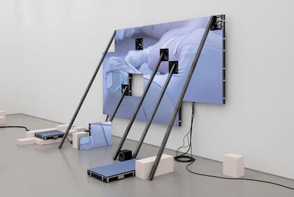 Другими словами — повествование. Как вы понимаете, в видеоискусстве оно может быть любым: прямым (хронологически выстроенным от раннего к позднему отрезкам времени), обратно хронологическим, разорванным другим повествованием, разрывающим другое повествование, может быть максимально скудным в монотонных абстрактных работах, может совмещать сразу несколько реальностей-вселенных, перескакивая из одной в другую, включая сверхнарратив о том, как снимается это самое видео, подчиняя своим задачам предыдущую историю. Способ рассказа может быть абсолютно каким угодно, и в видеоискусстве куда чаще, чем в кино, его принято усложнять или, лучше сказать, не упрощать для зрителя, предполагается, что, если вы дошли до галереи и сели смотреть, вы уже готовы к интеллектуальному усилию.