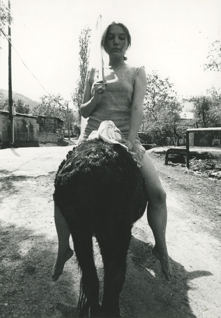 Знаменитое видео художницы Елены Ковылиной, одной из тех, кто определял лицо отечественного искусства в нулевых годах, чья радикальность практически не знала границ, а полет художественной мысли изящно обрамлялся в выверенную форму. Ковылина — художница перформанса, но так как все ее наследие мы имеем на жестких дисках в виде видеофайлов, то здесь ей тоже место. Одна из самых известных ее работ — это перформанс в Зальцбурге на площади Моцарта, где пианист играет его (Моцарта) произведения, а художница лежит на рояле абсолютно обнаженная в позе одалиски. И все это происходит в день рождения Моцарта же. В этом произведении задаются вопросы о зрительском внимании, о возвышенном и инстинктах, о том, какое событие привлекает больше людей и, конечно, о месте женщины в искусстве, как, собственно, и всегда. В видеоперформансе «Зеленые яблоки» художница едет на осле задом наперед, и в руках у нее, соответственно, зеленые яблоки. Действие происходит в Армении, в селе Арзакан, где действовал обычай, по которому, если невеста оказывалась не девственной, то ее возвращали родителям вместе с зелеными яблоками (символом чистоты были, напротив, красные гранаты). Разумеется, это комментарий о консервативной культуре и месте женщины в этой культуре.