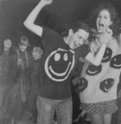 на 14–15 и точно не как студент модного колледжа. На нем было то, что я назвал бы «рейверский наряд лета любви»: расклешенные голубые джинсы с ободранными краями и старая рубашка как у бейсболистов. Он мог запросто прийти на занятия в головном уборе индейского вождя».