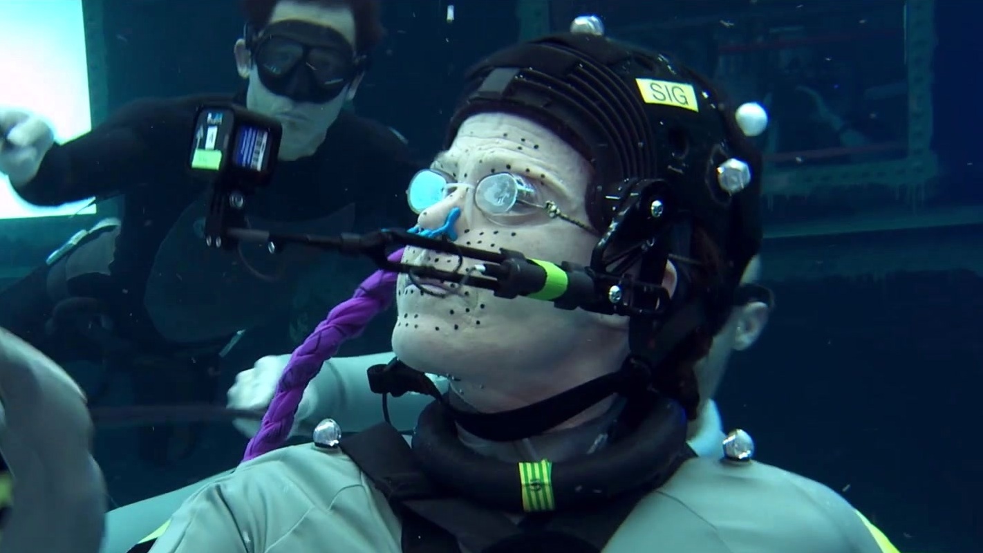 Поскольку действие второй и третьей части во многом происходит под водой, команда Кэмерона разработала для них технологию подводной съемки motion capture. В документальном фильме «Огонь и вода» съемочная группа «Аватаров» (включая и самого режиссера) увлекательно рассказывает про весь этот процесс. Например, про то, как было принято решение использовать в воде ультрафиолетовые камеры вместо традиционных для motion capture инфракрасных (вода быстро поглощает инфракрасный свет, а поскольку ультрафиолетовый проходит дальше, соответственно расширяется угол обзора камеры). Или про то, как, чтобы отражения с поверхности воды не попадали в кадр, водный резервуар объемом 900 тысяч галлонов (около 4 миллионов литров) заполнили шариками вроде пинг-понговых — они еще и освещали воду, потому что принимали свет из прожекторов. Поскольку пузырьки воздуха в воде сводили камеры с ума, Кэмерон решил отказаться от использования аквалангов; так все актеры (и операторы) учились подолгу задерживать дыхание. Кейт Уинслет, между прочим, побила рекорд Тома Круза, поставленный им во время съемок очередной «Миссия невыполнима» — семь минут против шести.