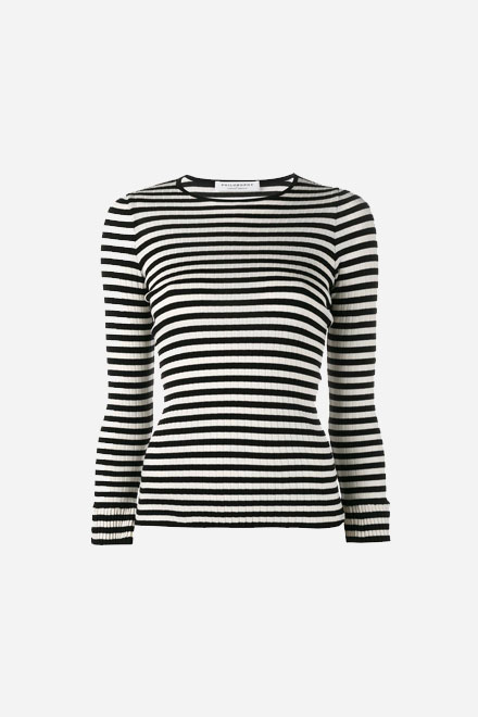 Историю любви двух закадычных друзей и взбалмошной Катрин в исполнении Жанны Моро можно использовать как справочник по киноязыку «новой волны»: летающая портативная камера, неразрешимые этические проблемы и емкие диалоги, которые объективно важнее сюжета. Сама Моро называет свою роль в «Жюле и Джиме» лучшей в своей карьере — французская интеллектуалка с очаровательными неврозами и страстью переодеваться в мужскую одежду. В будущем эту историю попробуют разыграть абсолютно разные режиссеры, но когда слышишь «Жюль и Джим», воображение неизменно рисует две картины. Девушка в смешной кепке, растянутом свитере и с нарисованными усами в компании молодых людей — это раз. Трое на пляже в полосатых купальных костюмах — это два. Вообще, в ранние 1960-е фильмов без тельняшек будто бы и не было. Вспомните хотя бы Джин Сиберг в ленте «На последнем дыхании» — полосок должно быть много.
