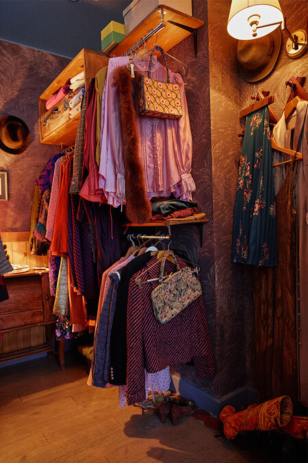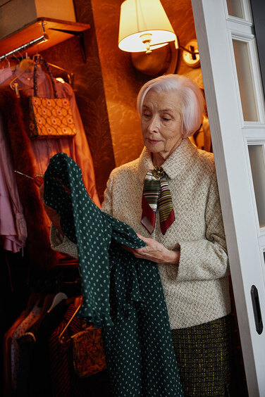Винтажных вещей мы старались избегать, потому что в кадре они часто выглядят красиво, но... уставше. Поэтому решили пренебречь правдоподобностью, чтобы вещи выглядели достаточно ново, ведь наша героиня в кадре молодеет, и хотелось, чтобы вещи в этом смысле от нее не отставали.
