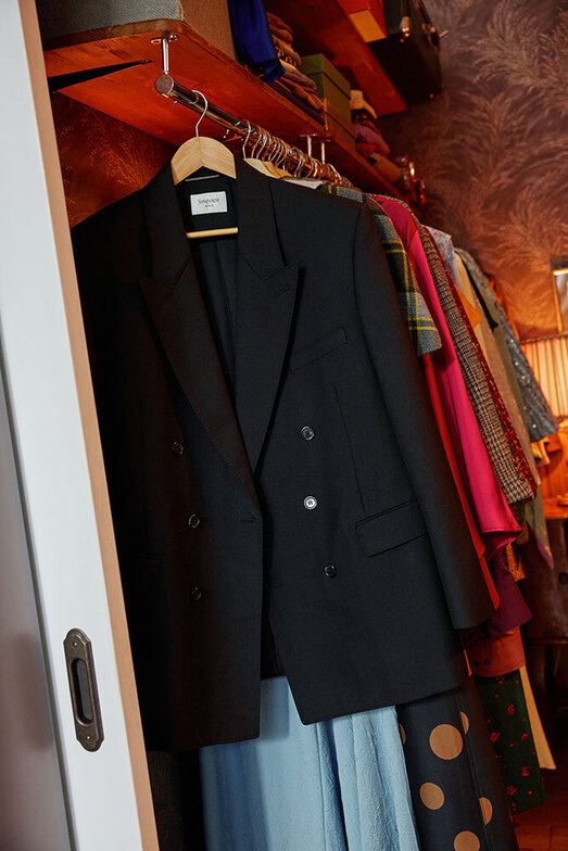 По российским меркам получилась довольно просторная гардеробная, но все же это не то место, где удобно снимать. Поэтому вместе с оператором Тимом Лобовым мы придумали сделать в ее стенах такие амбразуры — чтобы можно было снимать наших героинь буквально из-под рейлов с одеждой, из укромных уголков, сохраняя интимность происходящих там преображений.