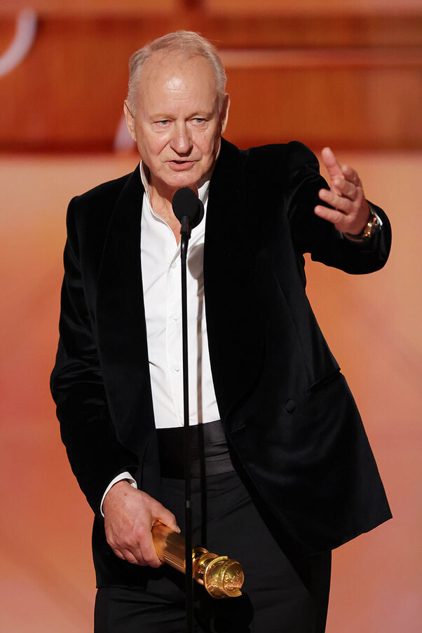 А вот первой неожиданностью премии — и, надо сказать, очень приятной неожиданностью — оказалась награда Стеллану Скарсгарду за лучшую мужскую роль второго плана в «Сентиментальной ценности». Обойдя и Шона Пенна, и Бенисио Дель Торо, великий шведский актер как будто сам удивился: «Я думал, что слишком стар для этого». Но не преминул воспользоваться возможностью, чтобы заявить: «Кино должно показываться в кинотеатрах». Жаль, что операторы не запечатлели в этот момент боссов Netflix.