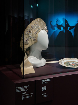Следующий раздел «Под маской» посвящен русскому стилю. «Поначалу это была своеобразная игра в переодевание — в “русское платье”, довольно далекое от народного костюма», — объясняет Ольга. Впрочем, со временем исследование фольклора становилось все более последовательным и глубоким — пока не достигло своего пика в конце XIX — начале XX века. Тогда появились балы «на русскую тему». Самый известный прошел в феврале 1903 года в Зимнем дворце. На нем представили оригинальные предметы времен царствования Алексея Михайловича, привезенные из Оружейной палаты, был издан соответствующий альбом с фотографиями гостей в костюмах по моде XVII века. Позднее на немецкой фабрике карточных игр фирмы Дондорф в Франкфурте-на-Майне были разработаны эскизы игральных карт по его мотивам; в 1913 году они были отпечатаны на Императорской карточной фабрике. На выставке покажут кокошник, который носила на этом балу великая княгиня Ксения Александровна.