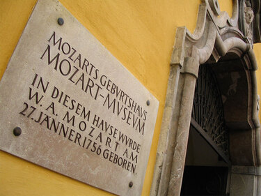 Табличка на доме в Зальцбурге, где родился Моцарт