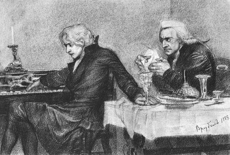 Михаил Врубель, «Сальери подсыпает яд Моцарту», конец 1883—начало 1884